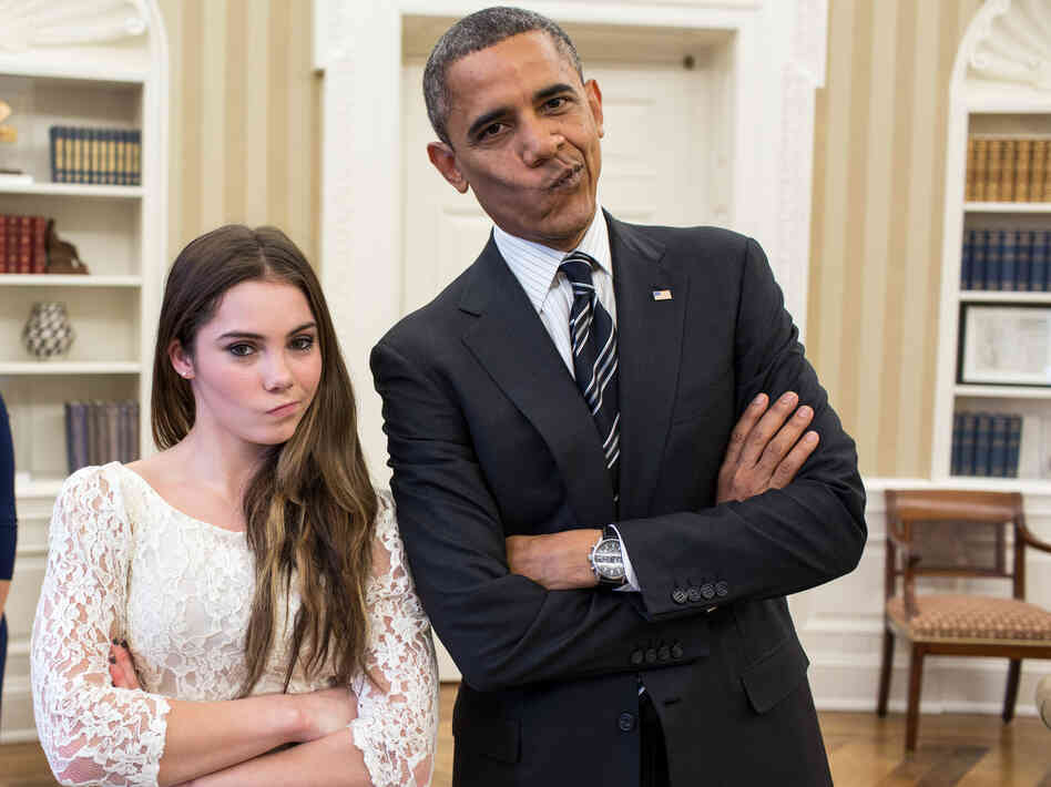 Why are there two Caucasians in the shot? Clearly, Barack Obama is a racist.